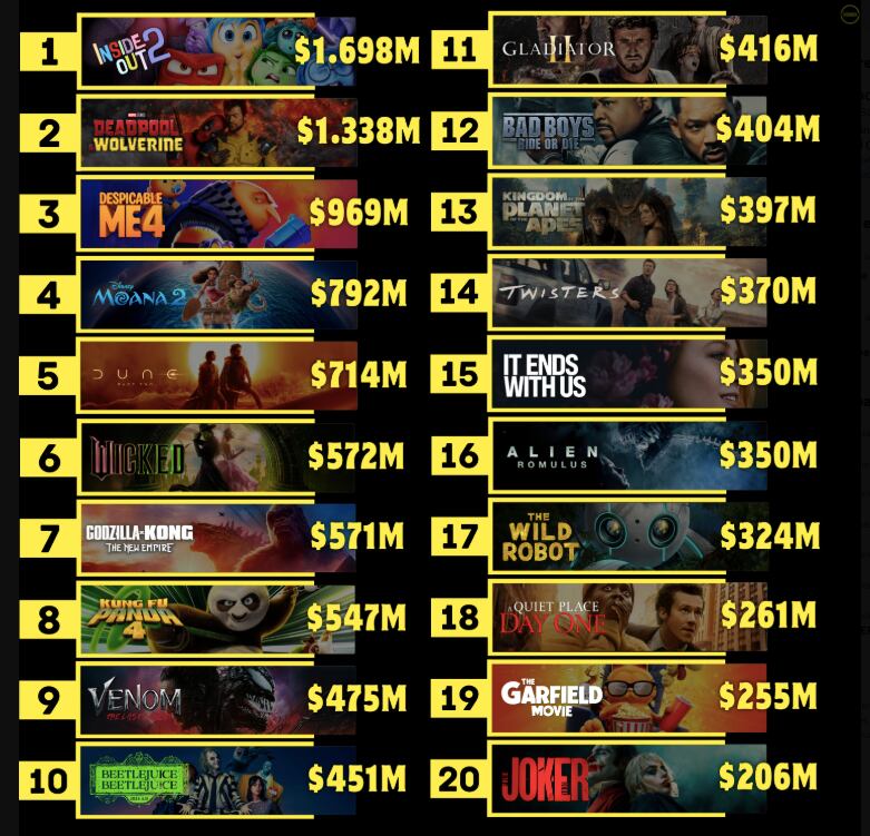 Las 20 películas más taquilleras del 2024