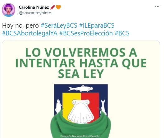 “Mandamos abrazos y felicitaciones al movimiento feminista en Baja California Sur: ¡lograron una votación histórica! No fue hoy pero pronto”