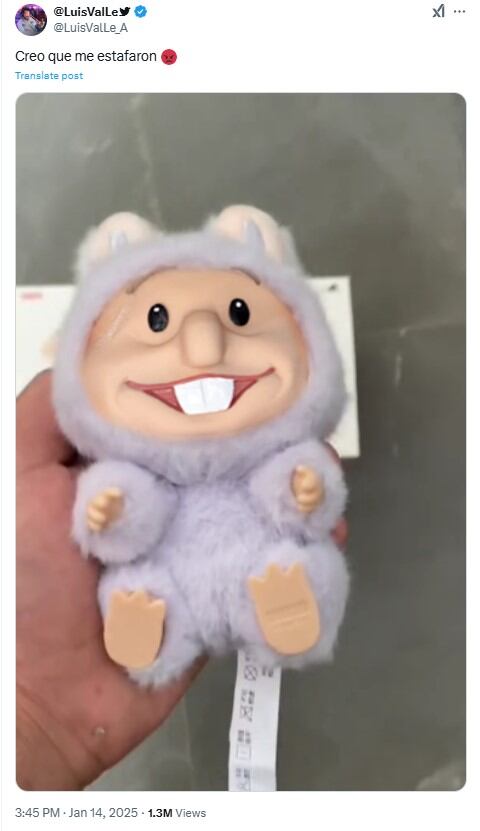 “Creo que me estafaron”, se lee en la publicación del muñeco Labubu de AMLO, el cual se está robando el corazón de los usuarios.