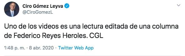 Para el caso del video apócrifo, Gómez Leyva aclaró que utilizando una lectura que hace una semana dio a un texto de Federico Reyes Heroles en el que se criticaba a varias de las acciones recientes del presidente Andrés Manuel López Obrador.