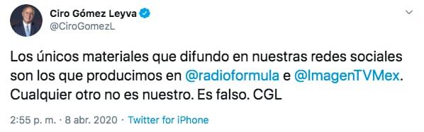 Transcribo textualmente los tuits de Ciro Gómez Leyva a los que se refirió en el noticiero de López-Dóriga.