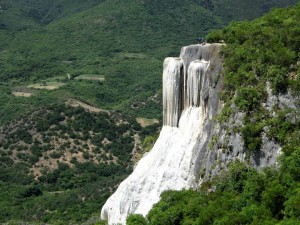 Hierve el Agua, Oax.- Cascada evoca inevitablemente a un ruido de agua cayendo que se convierte en estruendo conforme te vas acercando más y más. Sin embargo, en Hierve el Agua el espectáculo es totalmente diferente: sus cascadas son dos moles de piedra, de aproximadamente de 30 y 12 metros de altura respectivamente, cuya blancura mineral contrasta con la vegetación de los alrededores.