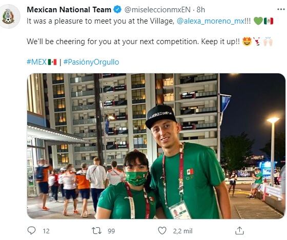 En la misma plataforma, la Selección de futbol de México compartió una foto donde se observa a Alexa Moreno junto a futbolistas como Diego Lainez, Alexis Vega, Luis Romo y Roberto Alvarado.