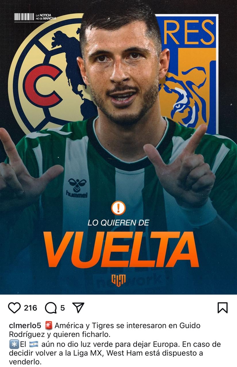 Sin embargo, el mismo reporte apunta a que Guido Rodríguez tendría la intención primordial de permanecer en Europa, lo que podría complicar su regreso al futbol mexicano con cualquiera de los dos equipos mencionados y más allá de la identificación que tiene con la camiseta de América.