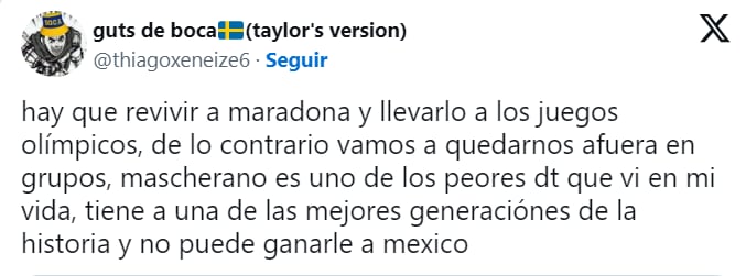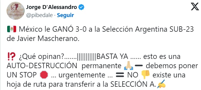 La goleada 3-0 de la Selección Mexicana Sub 23 sobre Argentina caló hondo en los aficionados albicelestes, pues pidieron la renuncia de Javier Mascherano.