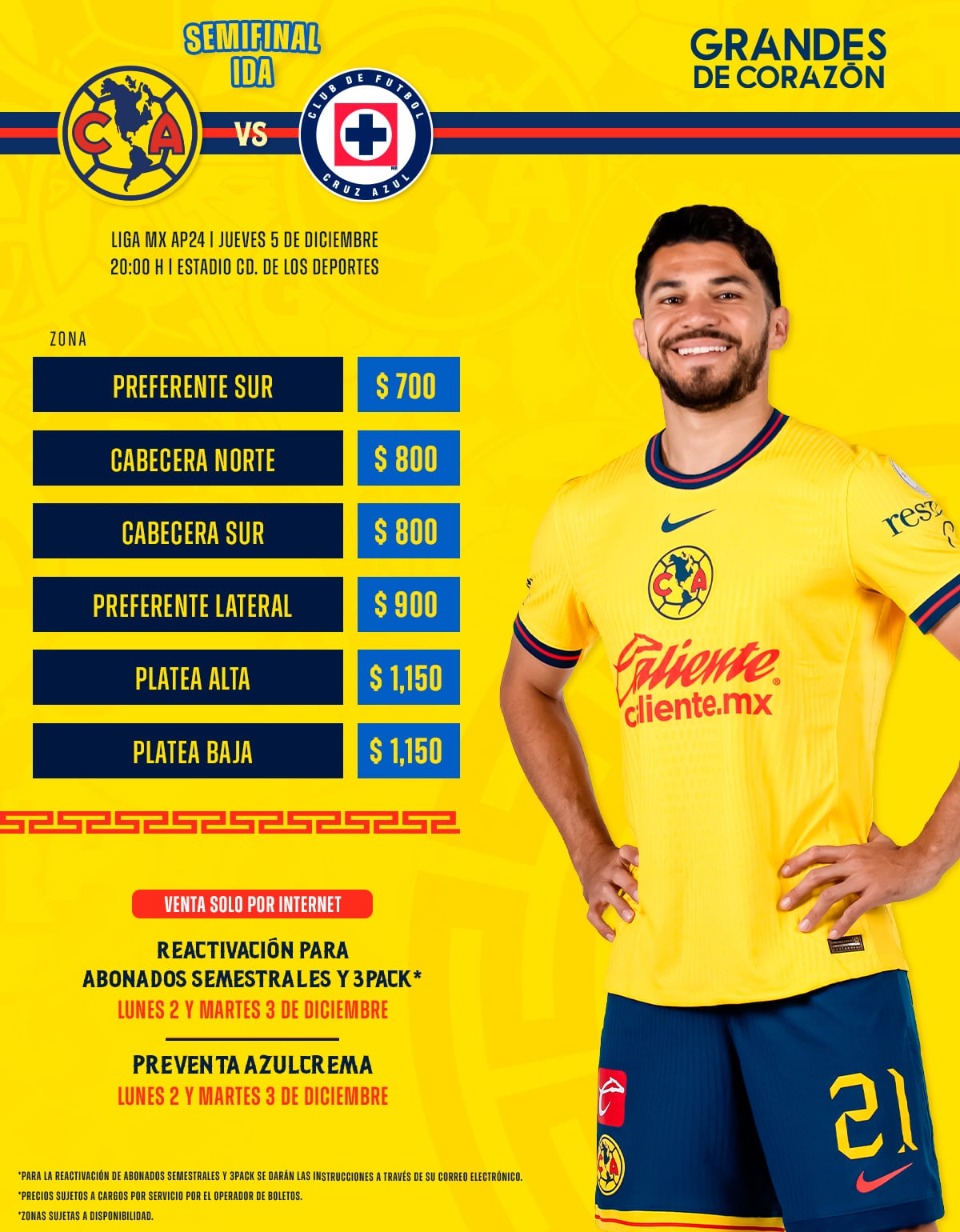 Para comprar boletos y asistir al América vs Cruz Azul, debes entrar a Ticketmaster en los días señalados de acuerdo a tu membresía con el club de Coapa (preventa 2 y 3 de diciembre), y si no eres abonado, podrás adquirir las entradas a partir del 4 de diciembre. La venta será únicamente en línea.