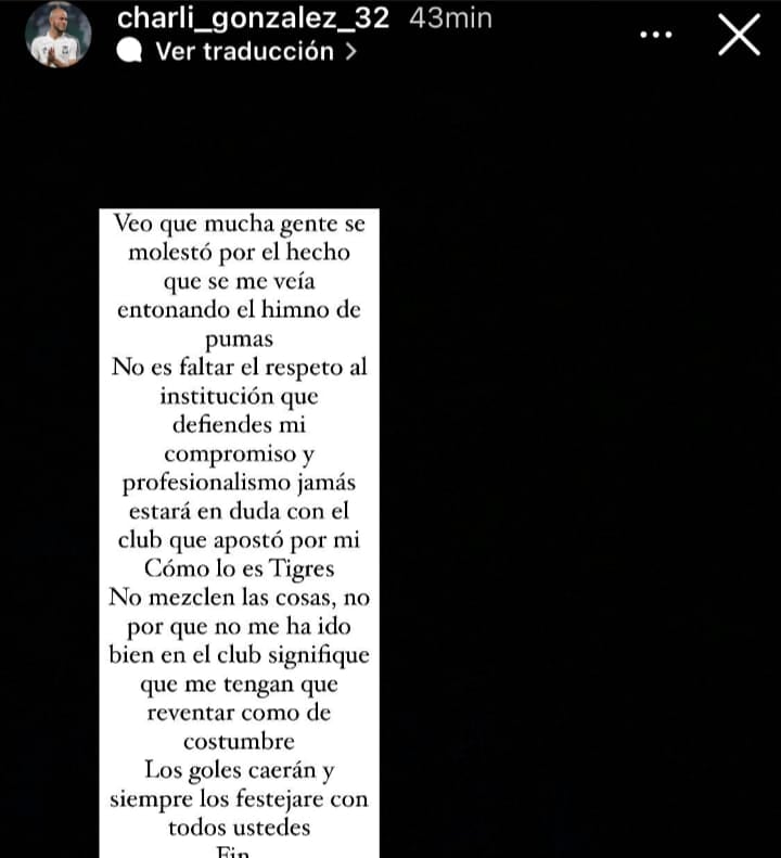 “Veo que mucha gente se molestó por el hecho de que se me veía entonando el himno de Pumas. No es faltarle al respeto a la institución que defiendes, mi compromiso y profesionalismo, jamás estará en duda con el club que apostó por mí como lo es Tigres”