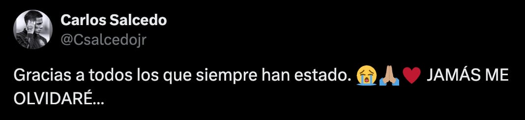 Desde entonces, Carlos Salcedo no había hablado públicamente, pero ahora, rompió el silencio con un misterioso mensaje que compartió en sus redes sociales.