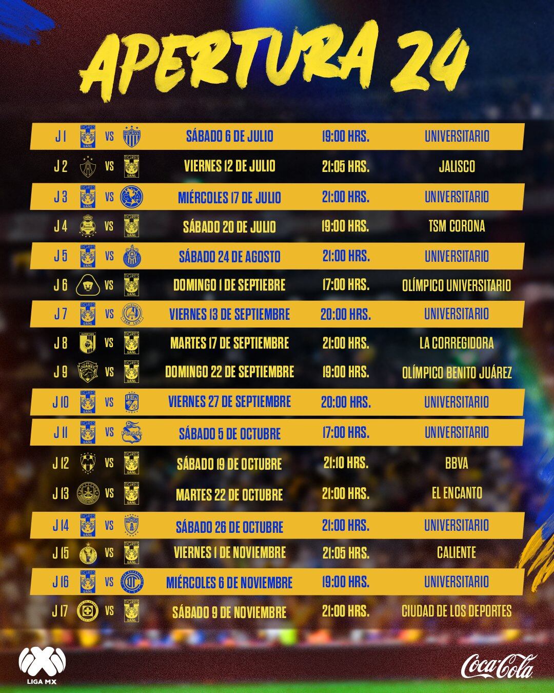 El Club Tigres debutará con TV Azteca el próximo sábado 6 de junio, pues jugarán la jornada 1 del Apertura 2024 contra el Club Necaxa.