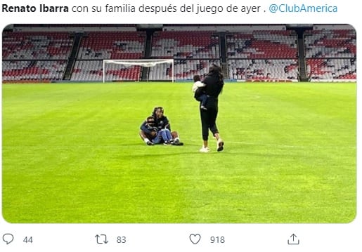 Al término del partido entre el Club América y Atlante FC, mismo que los azulcremas ganaron por la mínima, Renato Ibarra se reencontró con sus hijos sobre la cancha del mítico inmueble.