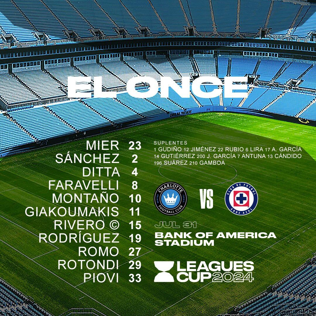Ya se dieron a conocer las alineaciones del Cruz Azul y del Charlotte FC para enfrentarse en su partido de la Leagues Cup.
