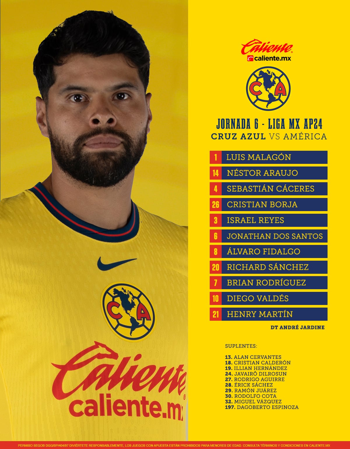 Ya conocemos a los 22 protagonistas que saltarán a la cancha del Estadio Ciudad de los Deportes para el Clásico Joven de la Liga MX entre el Cruz Azul y el Club América.