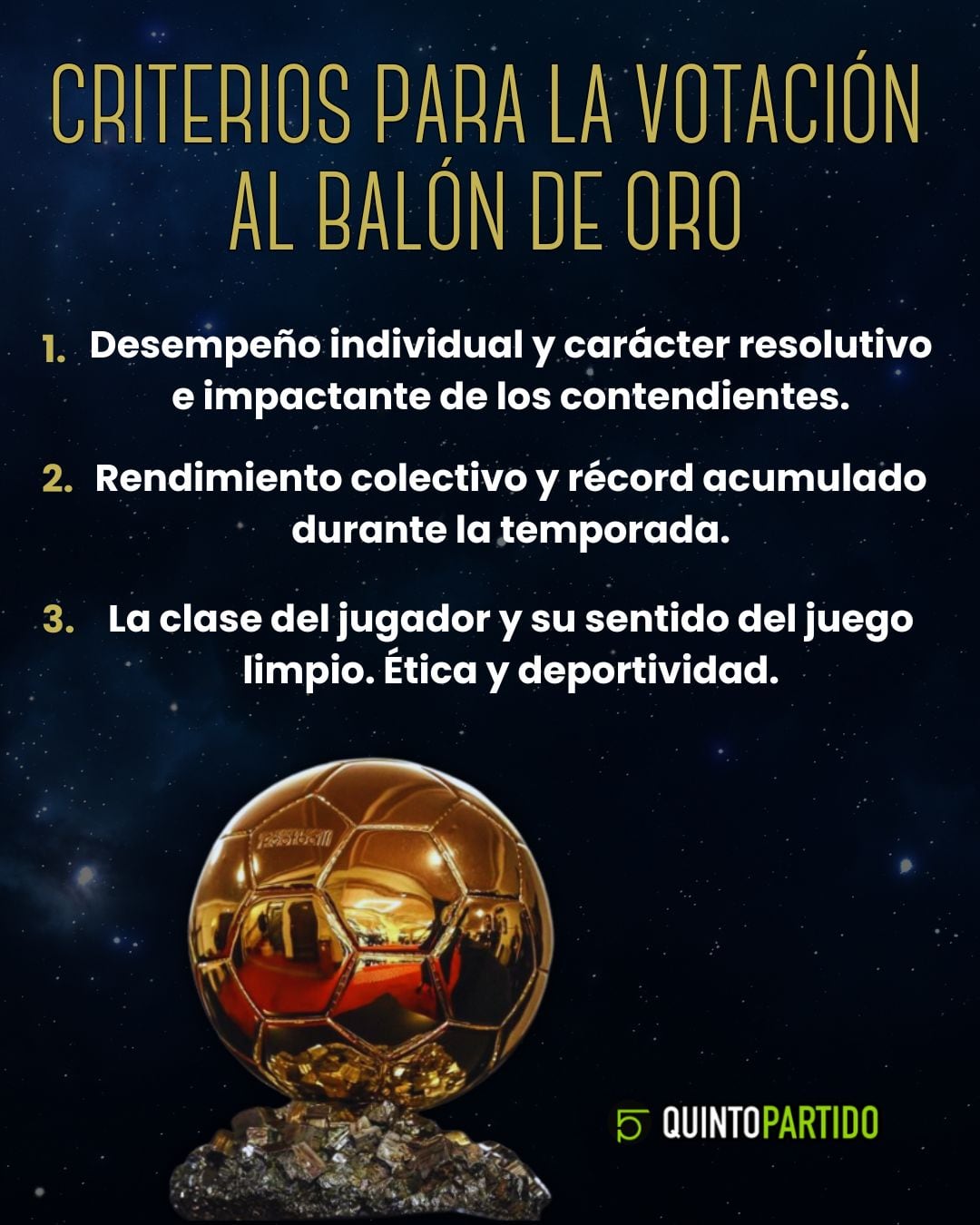 Sin embargo, se reveló la lista de criterios que se toman en cuenta para nombrar al mejor jugador del mundo en el Balón de Oro.