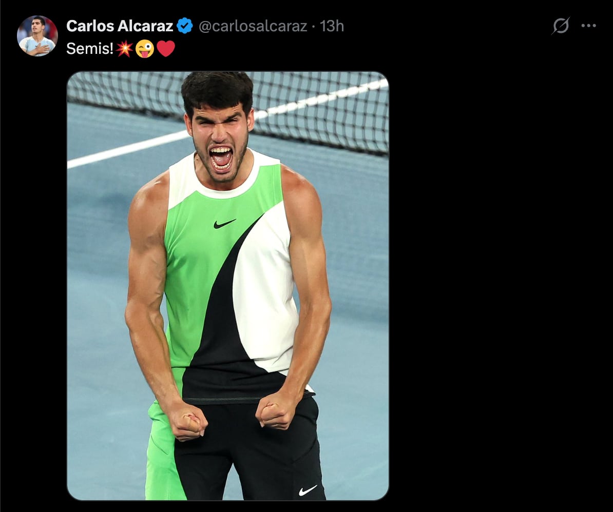 El jueves 29 de enero, el tenista español, Carlos Alcaraz, se medirá con el alemán Alexander Zverev en la semifinal del Australian Open 2026.