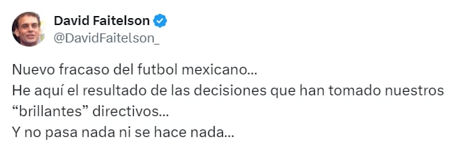 Aunque la publicación de David Faitelson pueda parecer acertada, usuarios de redes sociales lo criticaron por atacar a la Selección Mexicana y a los directivos de la federación.
