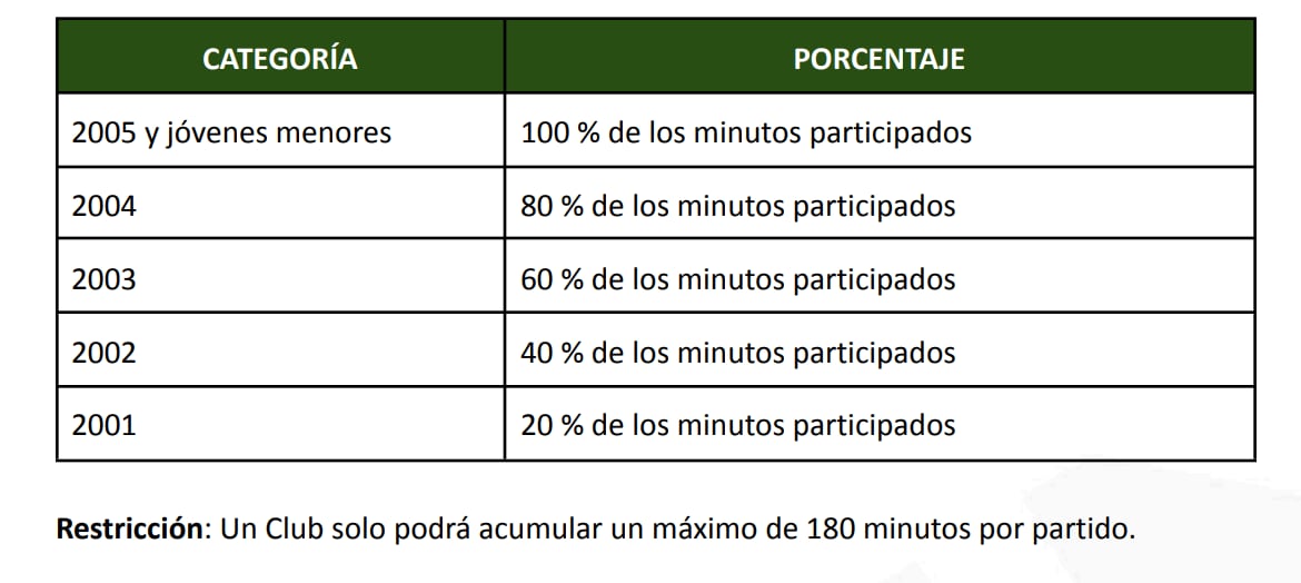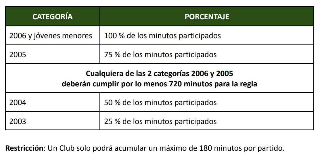 - Se agregan un mínimo de minutos de los 1,530 destinados a las 2 categorías menores de la regla, para igualar la cantidad de minutos de estas categorías con los últimos campeones del mundo Sub 20.