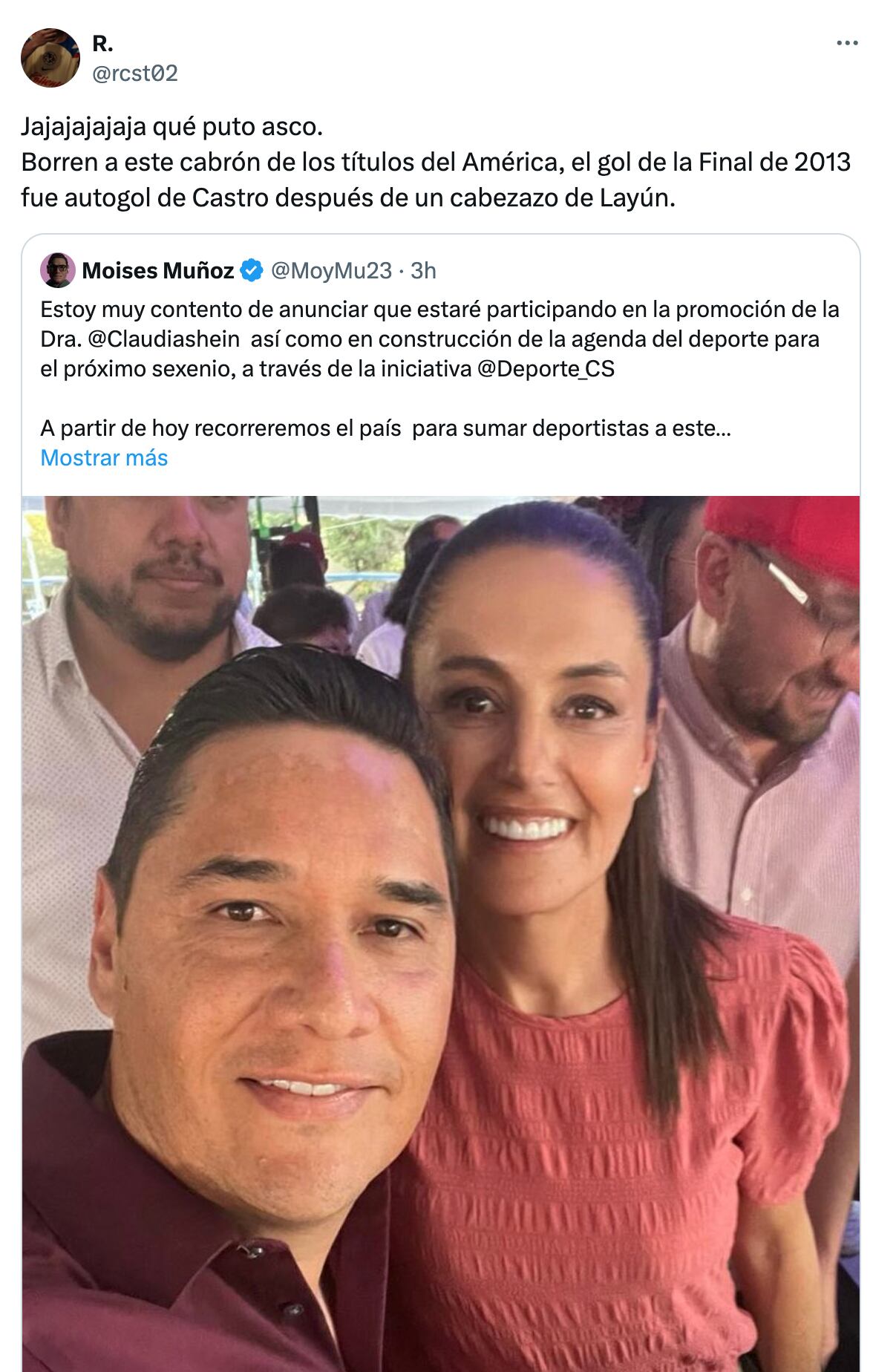 Los fans del Club América explotaron contra Moisés Muñoz unirse al proyecto de Claudia Sheinbaum rumbo a las elecciones presidenciales de este año.