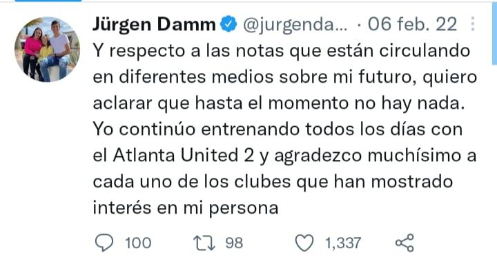“Hasta el momento no hay nada. Yo continúo entrenando todos los días con el Atlanta United 2 y agradezco muchísimo a cada uno de los clubes que han mostrado interés en mi persona”, señaló.