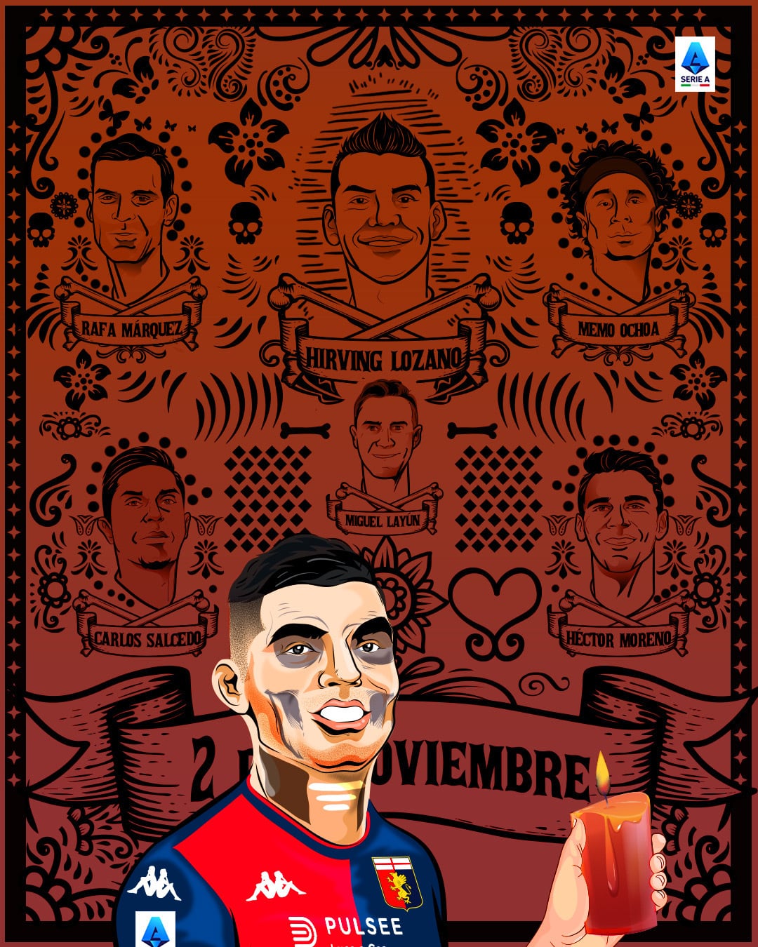 La Serie A aprovechó el Día de Muertos para publicar una imagen conmemorativa donde se puede observar a Memo Ochoa y Miguel Layún, dos de los mexicanos que han jugado en Italia.