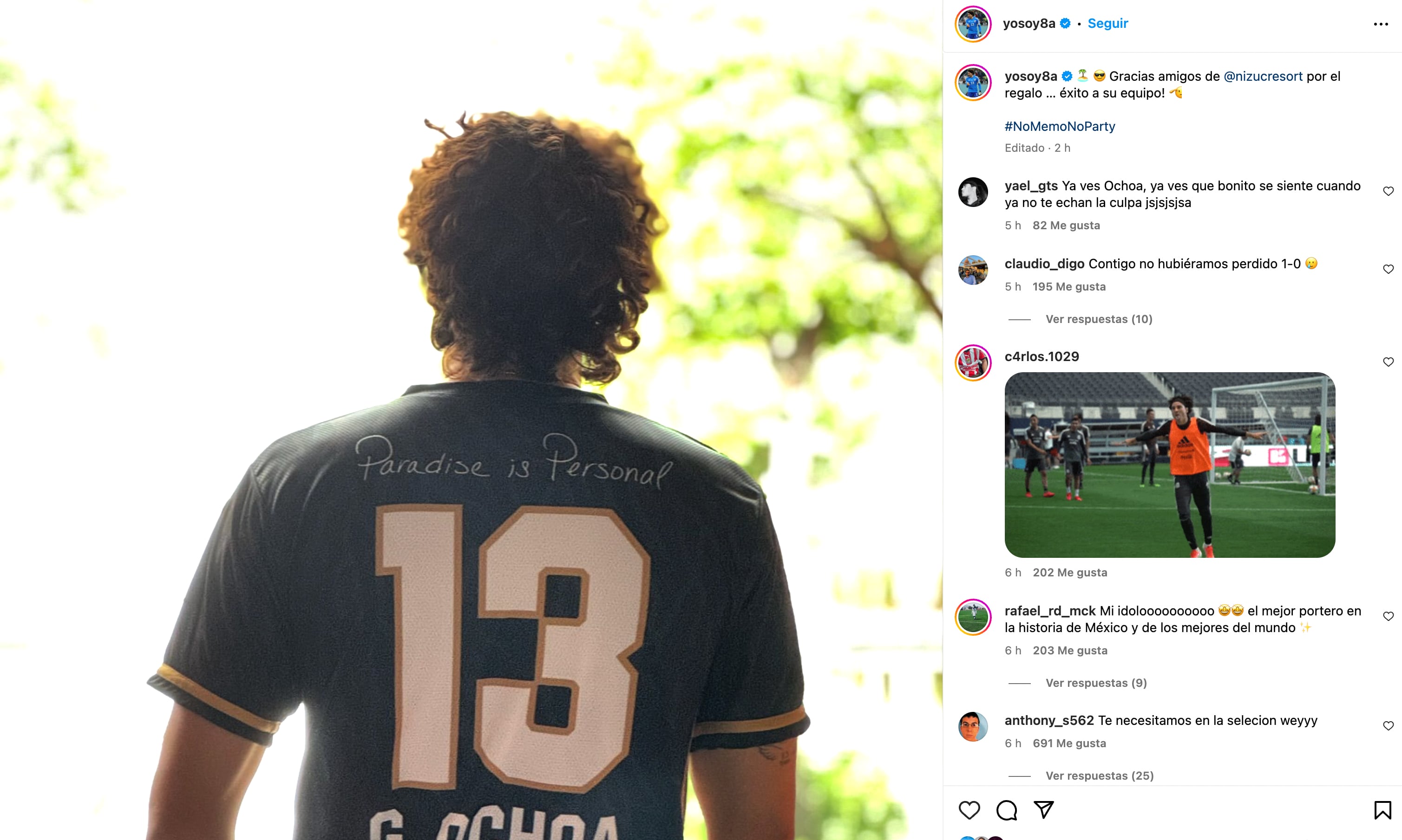El guardameta mexicano se encuentra vacacionando en Cancún, Quintana Roo, México, específicamente en el hotel de Nickelodeon, lugar desde donde publicó una foto que causó indignación debido a que la hizo pública luego de que la Selección Mexicana sufriera una humillación.