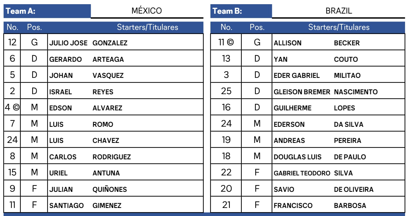 Para México anotó Julián Quiñones y Memote Martínez, mientras que para Brasil descontó Andreas Pereira, Gabriel Martinelli y Endrick.