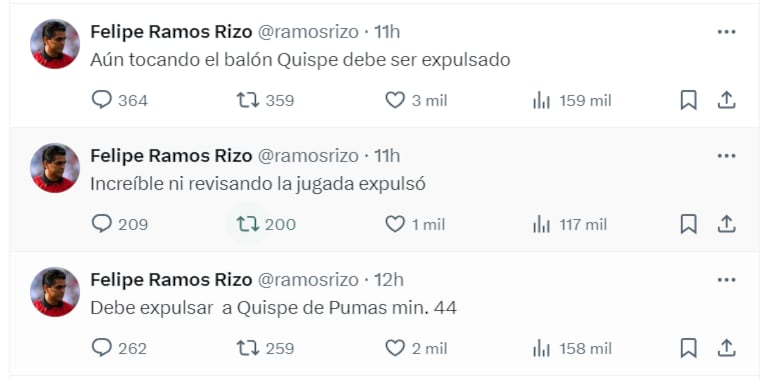 Uno de ellos fue el ex árbitro mundialista Felipe Ramos Rizo, quien aseguró que le tenían que haber mostrado la tarjeta roja al jugador de los universitarios.