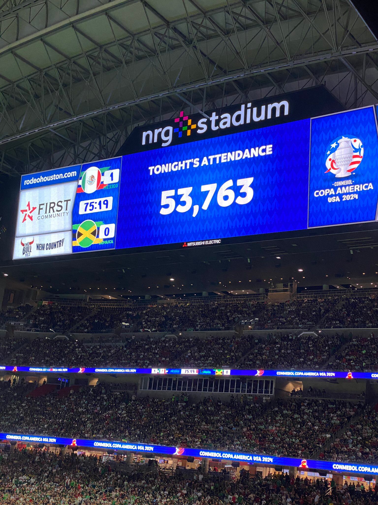En el primer partido del Tri en la Copa América 2024, no se llenó el NRG Stadium, pues la asistencia oficial fue de 53 mil 763 aficionados, muy lejos de la cifra esperada.