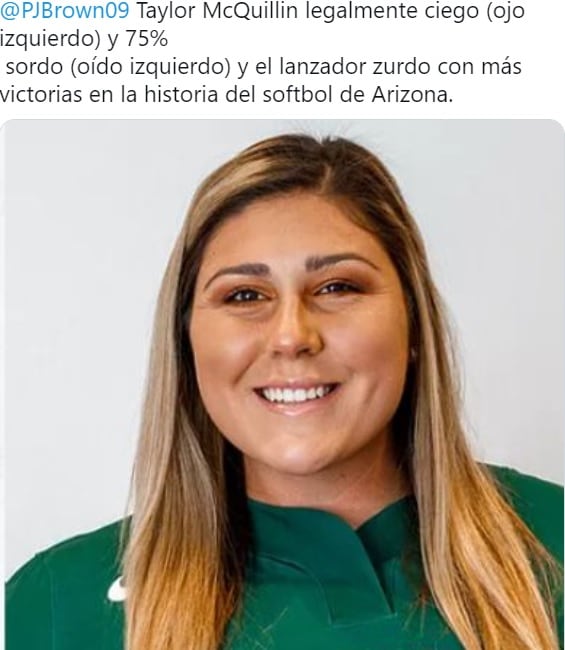 Cabe señalar que Taylor McQuillin es ciega del ojo izquierdo; sin embargo, está catalogada como una de las mejores pitcher de su generación.
