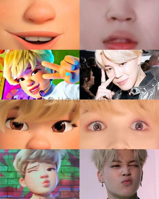 Por lo que el personaje ficticio, es muy parecido en rostro, dientes y gestos a Jimin de BTS.