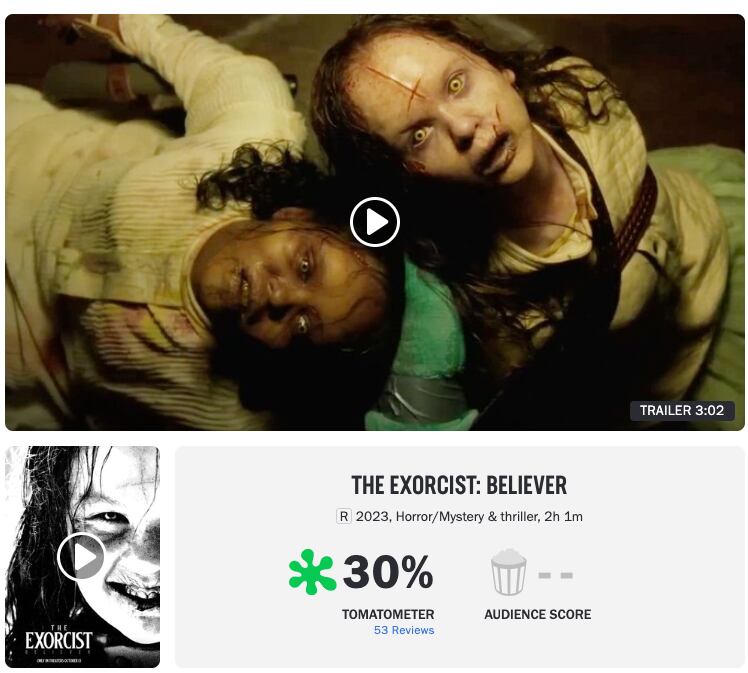 Aunque cabe mencionar que en varias ocasiones, la crítica en Rotten Tomatoes no define si gusta o no al público y habrá que esperar el recibimiento del público para El Exorcista: Creyentes.