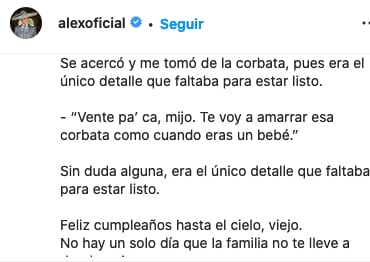 “No hay un solo día que la familia no te lleve a donde quiera que vayamos”, fue como Alejandro Fernández culminó con su texto.