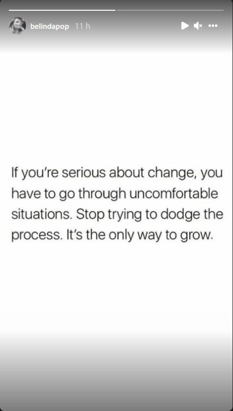 “Si te tomas en serio el cambio, tienes que atravesar una situación incómoda. Deja de intentar esquivar el proceso. Es la única forma de crecer”, mensaje que compartió Belinda.