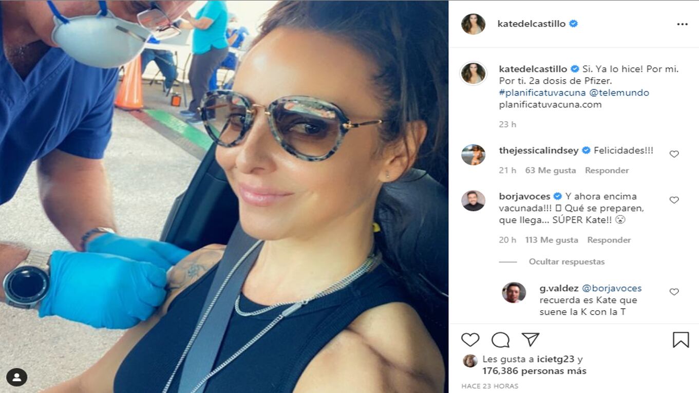 De acuerdo con la publicación de Kate del Castillo, la famosa recibió el día de ayer, martes 22 de junio, la segunda dosis de la vacuna Pfizer.