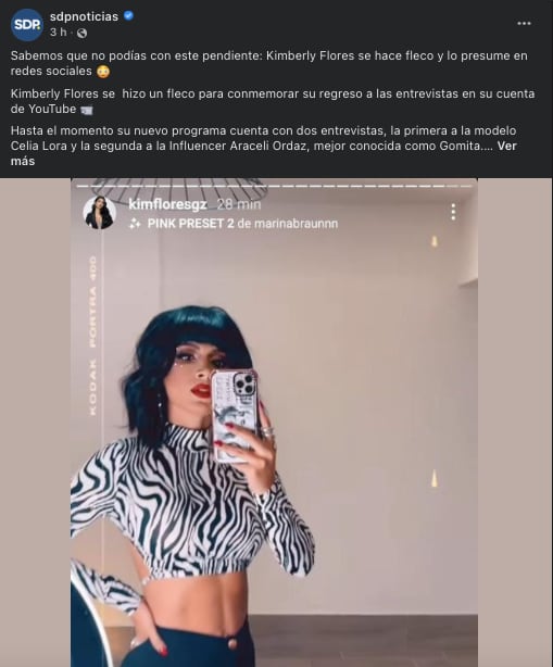 Esto luego de que SDP Noticias publicara la nota “Kimberly Flores se hace un fleco y sorprende en redes sociales” en Facebook.