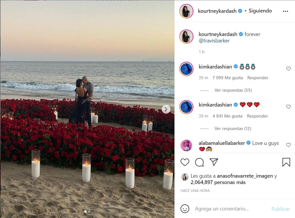 Kourtney Kardashian eligió la misma red social para anunciar la noche del domingo 17 de octubre que el baterista de Blink-182 le había pedido matrimonio.