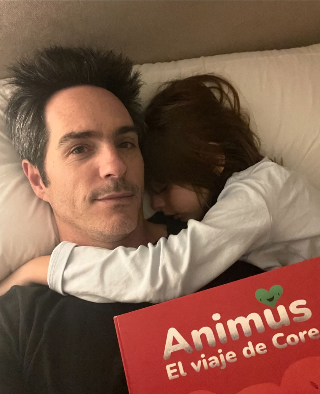“Buenas noches”, escribió Mauricio Ochmann junto a un par de instantáneas en las que se ve a su hija menor abrazada a su cuello, mientras él sostiene un libro para leerle.