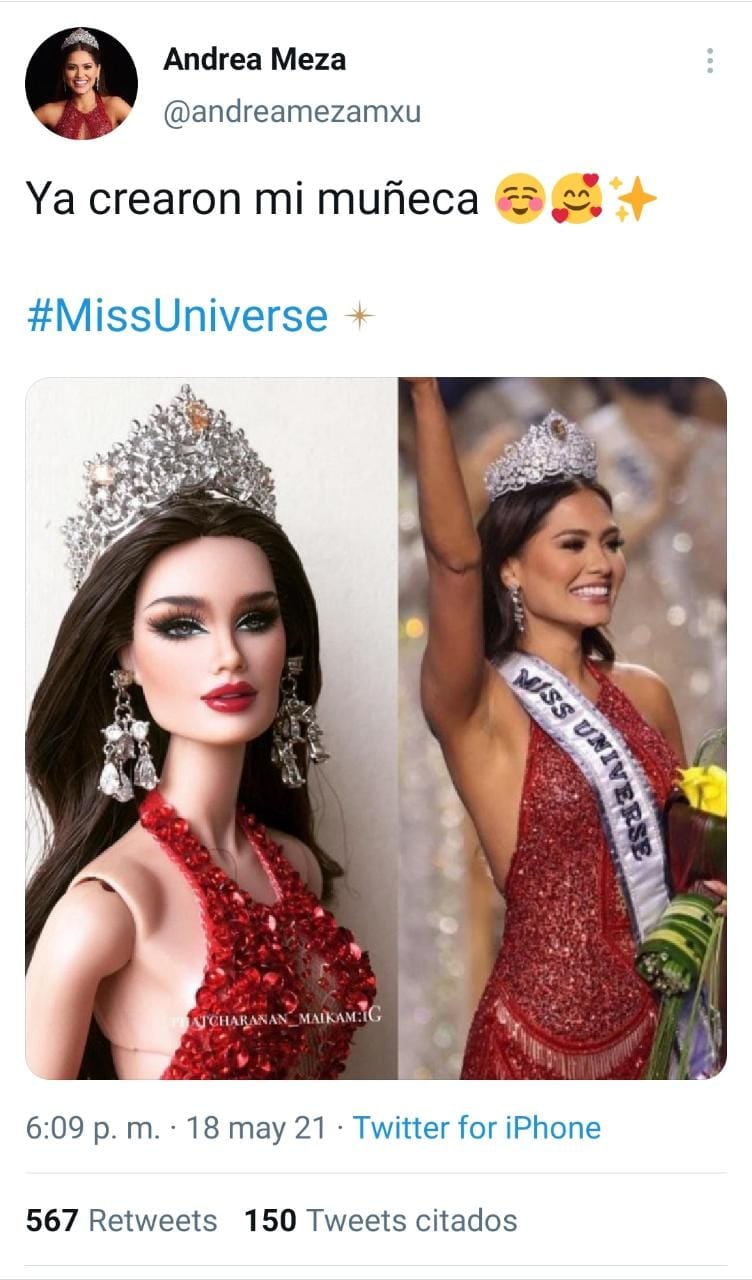 Por otro lado, al darse cuenta de la existencia de la muñeca, Andrea Meza no tardó en compartir la noticia por medio de sus redes sociales.