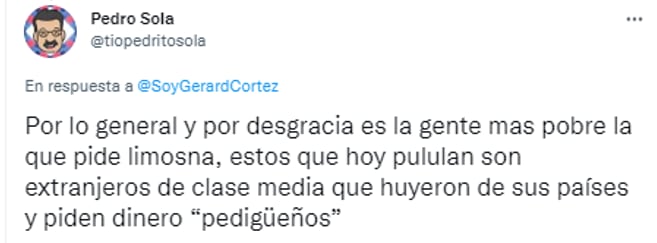 “Estos que hoy pululan son extranjeros de clase media que huyeron de sus países y piden dinero ‘pedigüeños’ ”