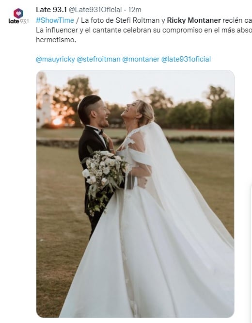 Ricky Montaner y Stefi Roitman comparten su primera foto como marido y mujer