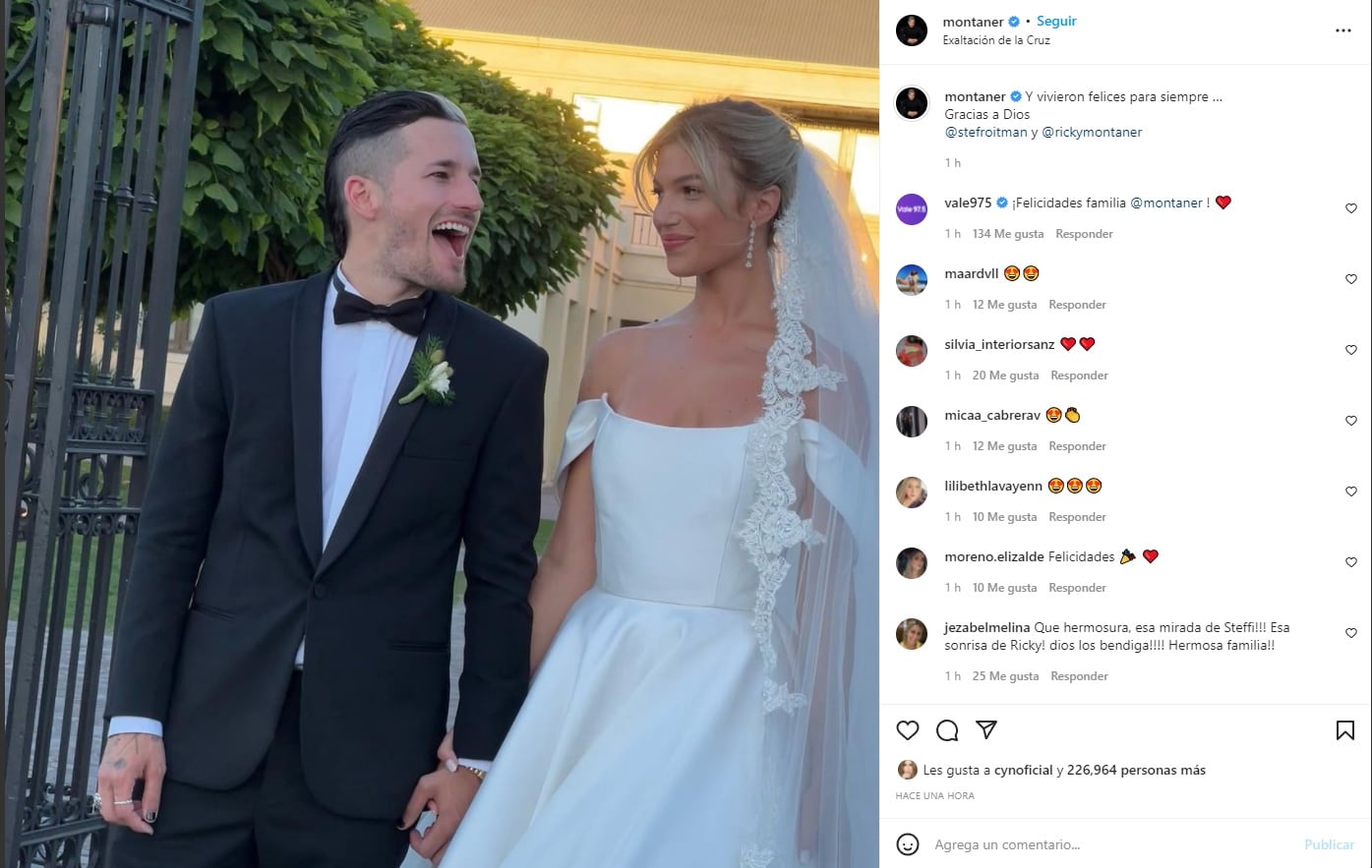 Ricardo Montaner está inmensamente feliz por la boda de su hijo Ricky con Stefi Roitman. A través de sus redes sociales el cantante se mostró muy feliz por este día muy importante para la familia.