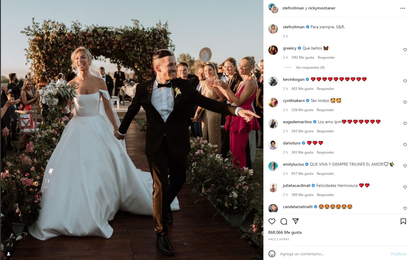 La boda entre Ricky Montaner y Stefi Roitman se realizó con total hermetismo, sin embargo la pareja decidió compartir la primera foto como marido y mujer.