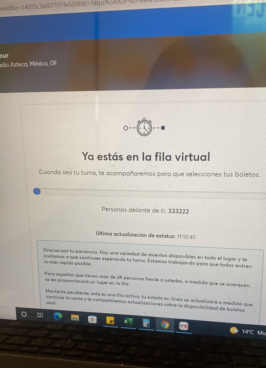 A pesar de que los boletos agotados pertenecen a la primera tanda, hay más de 300 mil personas esperando en la fila virtual para poder adquirirlos.
