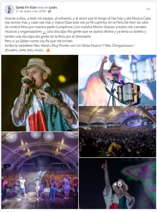 Santa Fe Klan se disculpa por que evento se le salió de control en la Feria de León, Guanajuato el 19 de enero.