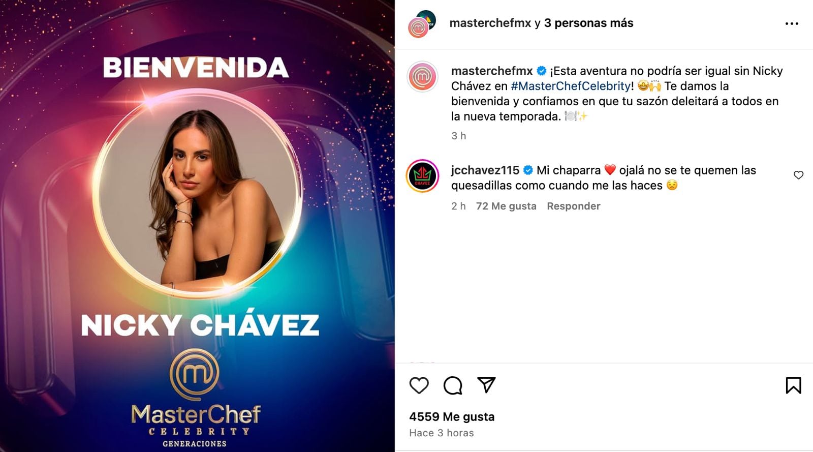 Muestra de ello es que “se le queman las quesadillas”, según indicó Julio César Chávez con un comentario que agregó a la publicación donde se confirmó la incorporación de Nicole a MasterChef Celebrity 2025: