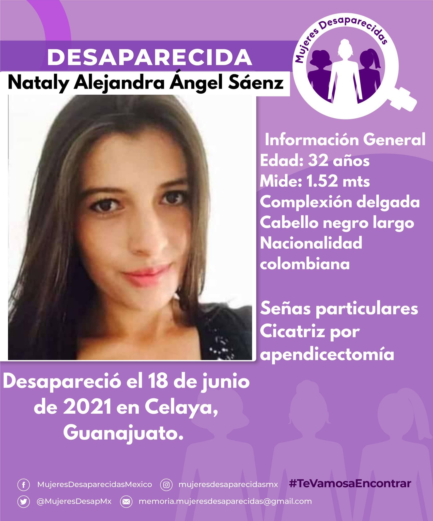 Nataly Alejandra Ángel Sáenz, joven colombiana de 32 años, desapareció el 18 de junio en Celaya, Guanajuato.