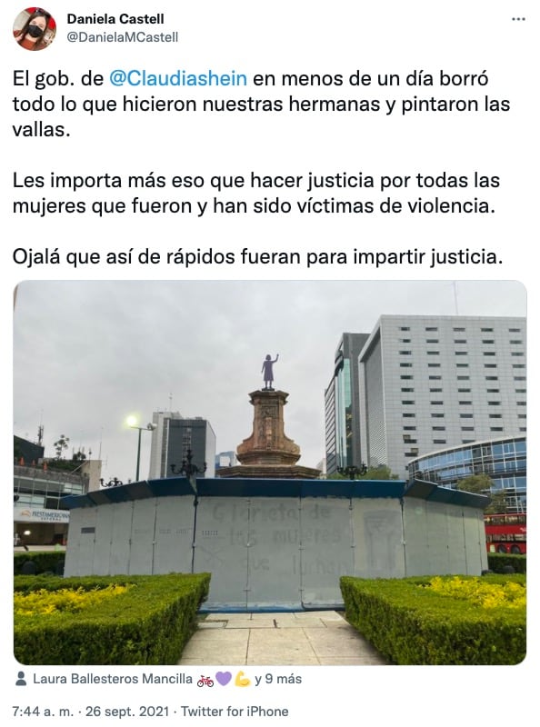 Sin embargo, este domingo, las pintas en las vallas habían desaparecido, al parecer removidas por trabajadores de la Ciudad de México o de la Alcaldía Cuauhtémoc.