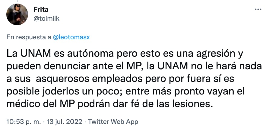El reclamo de los esrudiantes es que la seguridad de la UNAM no cuida a los estudiantes, y varios comentarios al video afirman que la Máxima Casa de Estudios no hará nada contra los trabajadores.