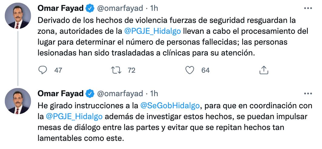 Por otra parte, Omar Fayad informó que elementos de la Procuraduría General de Hidalgo resguardan Ciudad Cooperativa Cruz Azul tras los hechos violentos.