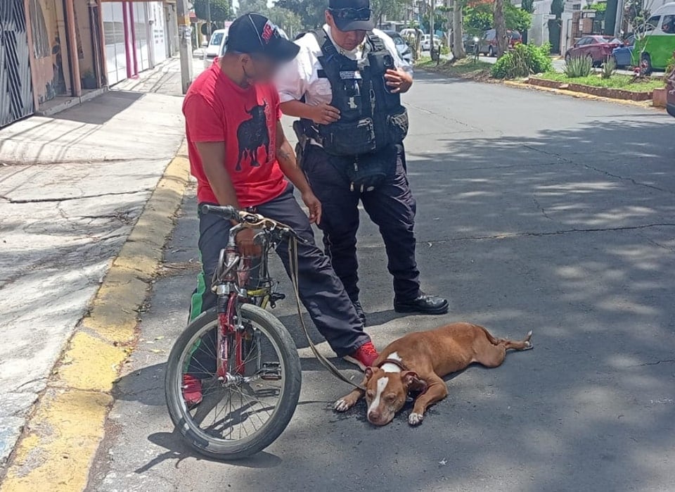 El hombre, quien paseaba con su mascota en bicicleta, tuvo que pedir ayuda a policías de Neza cuando el perrito se negó a continuar caminando.