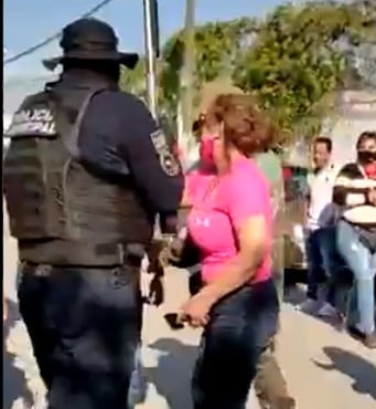 Los policías municipales empujaban a los representantes de casilla mientras portan armas largas para intimidar a la población.